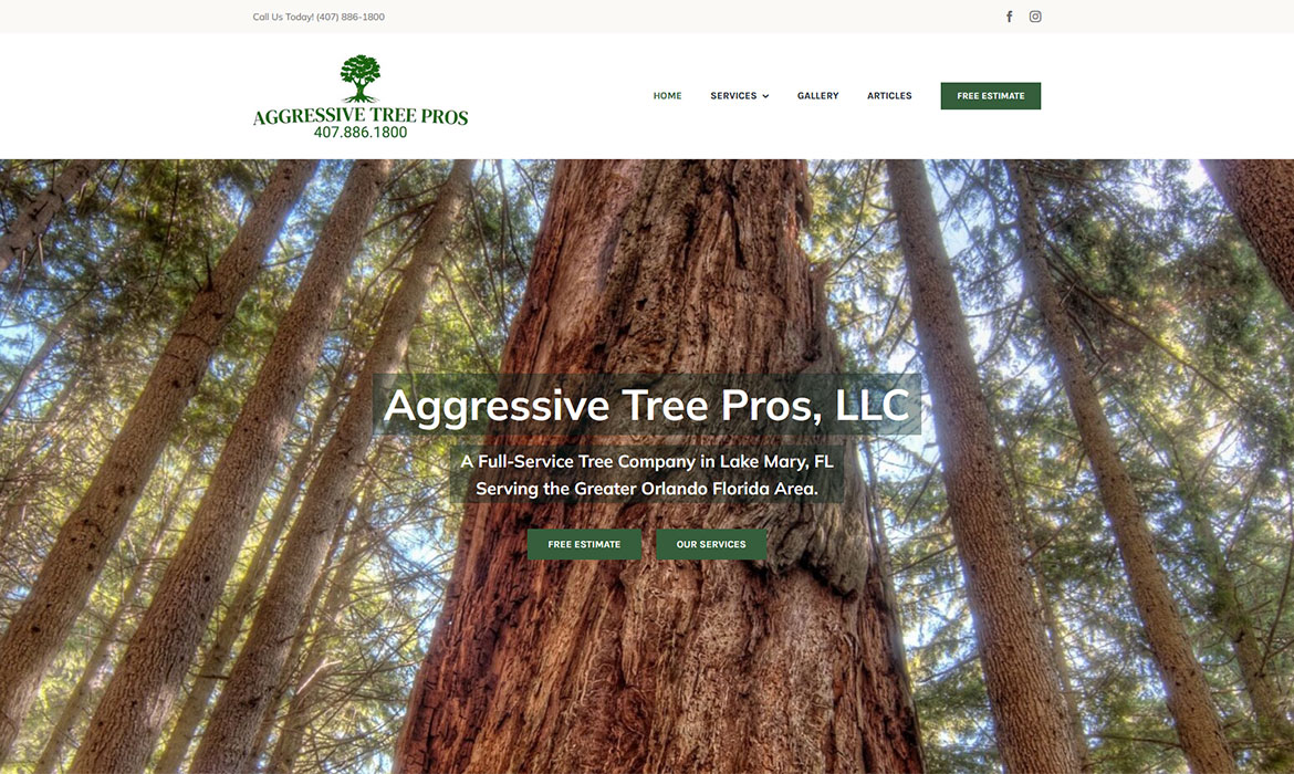 Creative Developments established and manages an organic marketing campaign for the client with a focus on creating, optimizing and registering new posts for content, each post targeting keyword phrases that the client would like the site to be found for with a goal of page one placement on search engine result pages (SERP). Keyword phases include “tree companies in Lake Mary”.